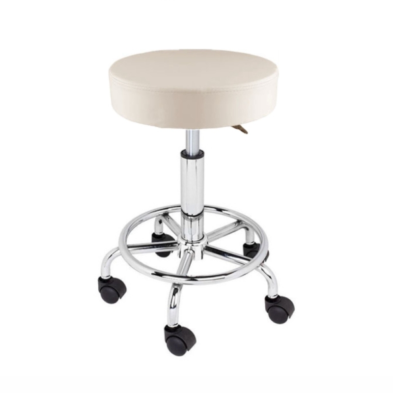 Σκαμπό Cream με υποπόδιο τροχήλατο για κρεβάτι Μασάζ Φυσικοθεραπείας Ρεφλεξολογίας Οδοντιάτρων με Αμορτισέρ