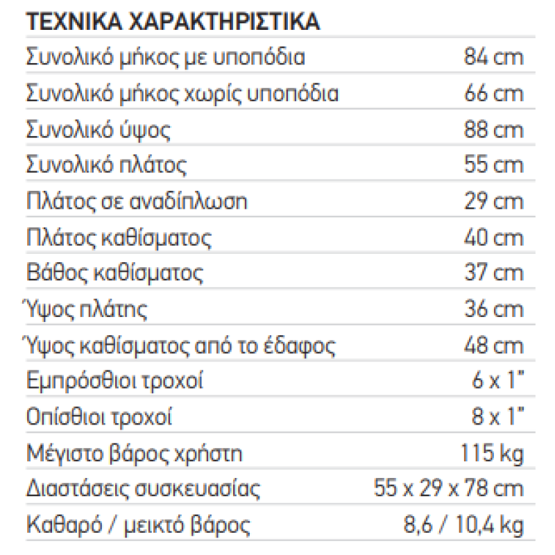 | Μέγιστο βάρος χρήστη | 115 kg |